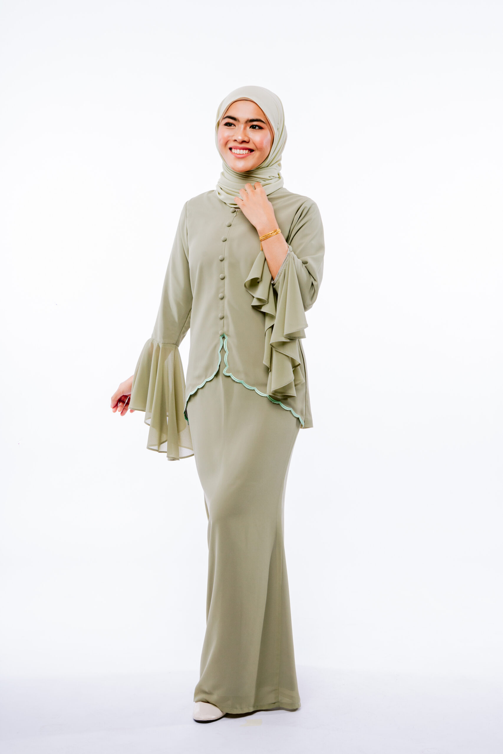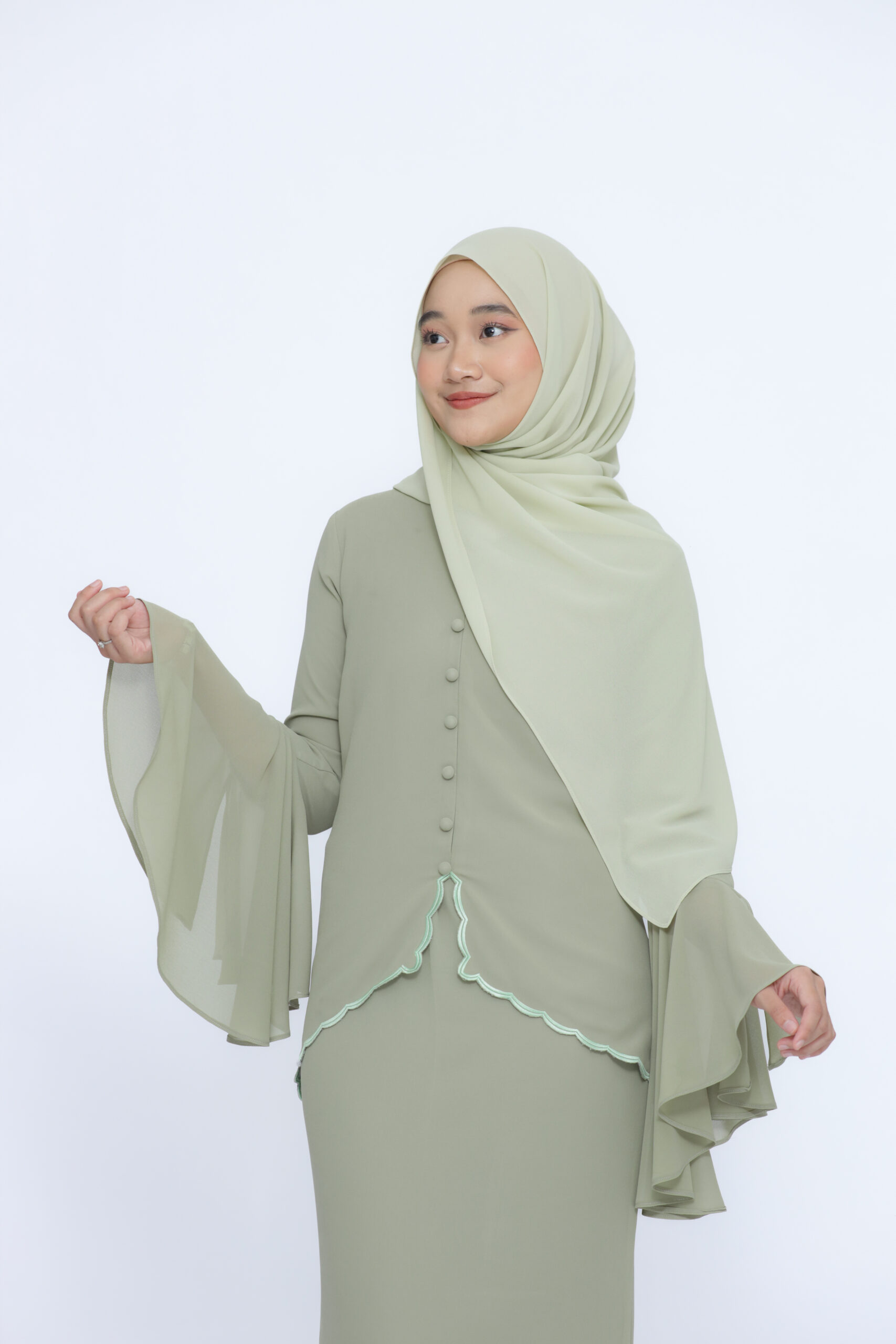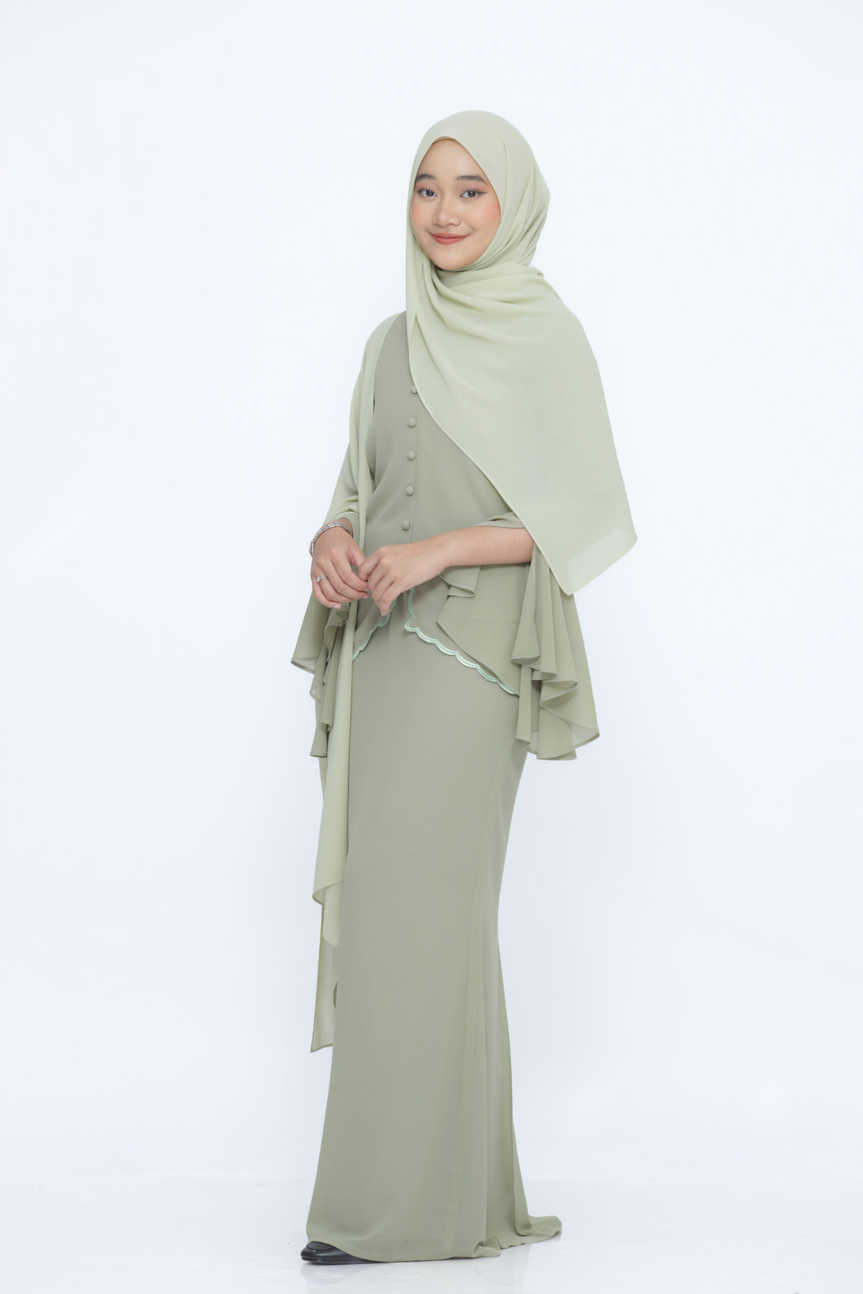 Type: Kebaya sulam and pleated skirt.