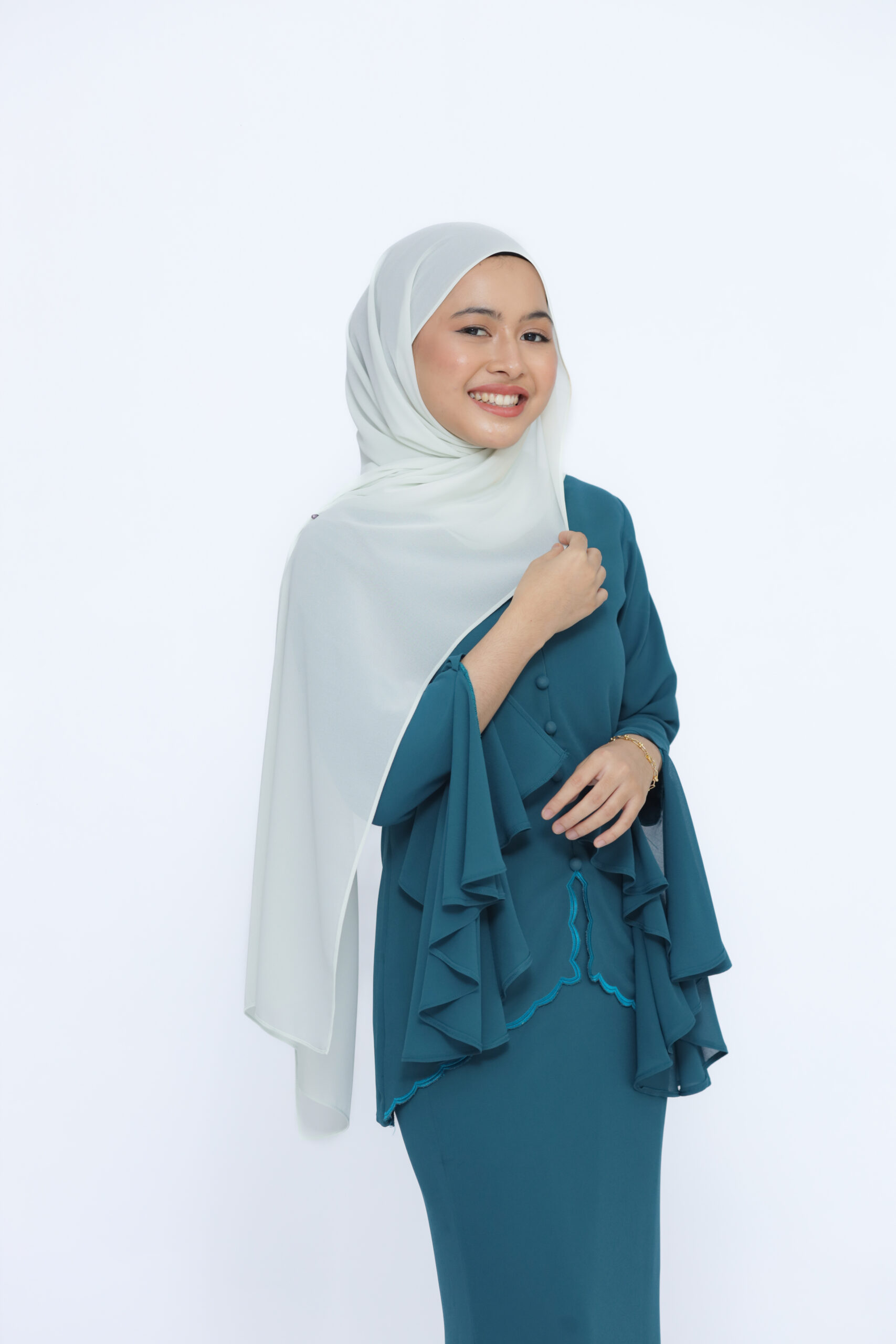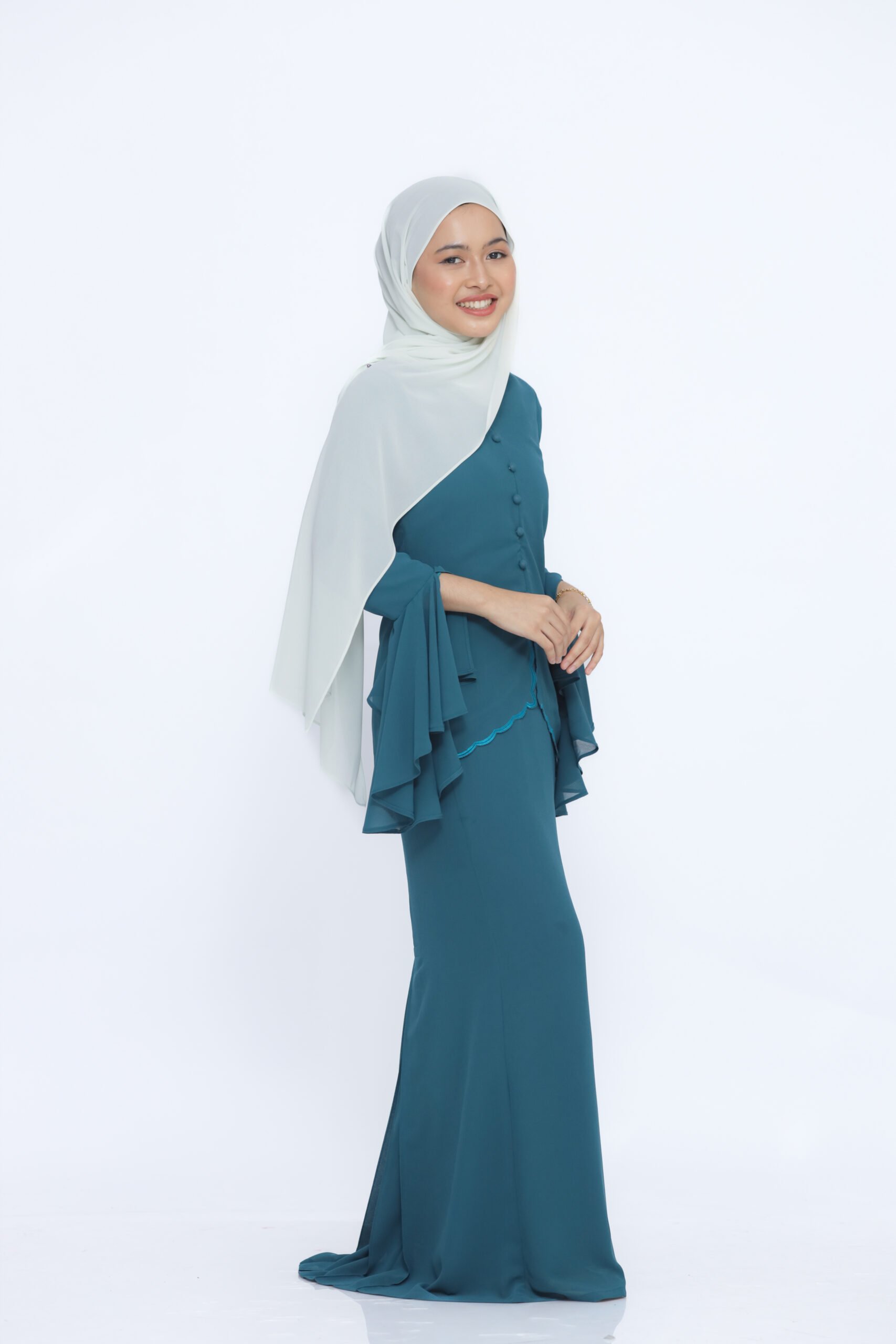 Type: Kebaya sulam and pleated skirt.